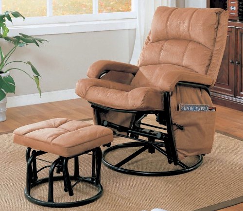 2PC Upholstered Swivel Glider Rocker Reclining Chair, Also Includes Ottoman In Tan Microfiber. (Item# Vista Furniture CF650005) Features.