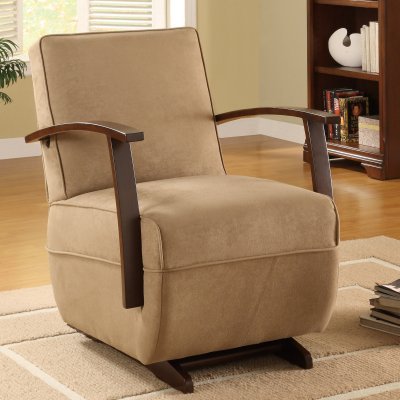 Powell Glider Rocker with Tan Microfiber Fabric & "Dark Cherry" Bentwood Arm, 19-1/2-Inch Seat HeightOverviews.